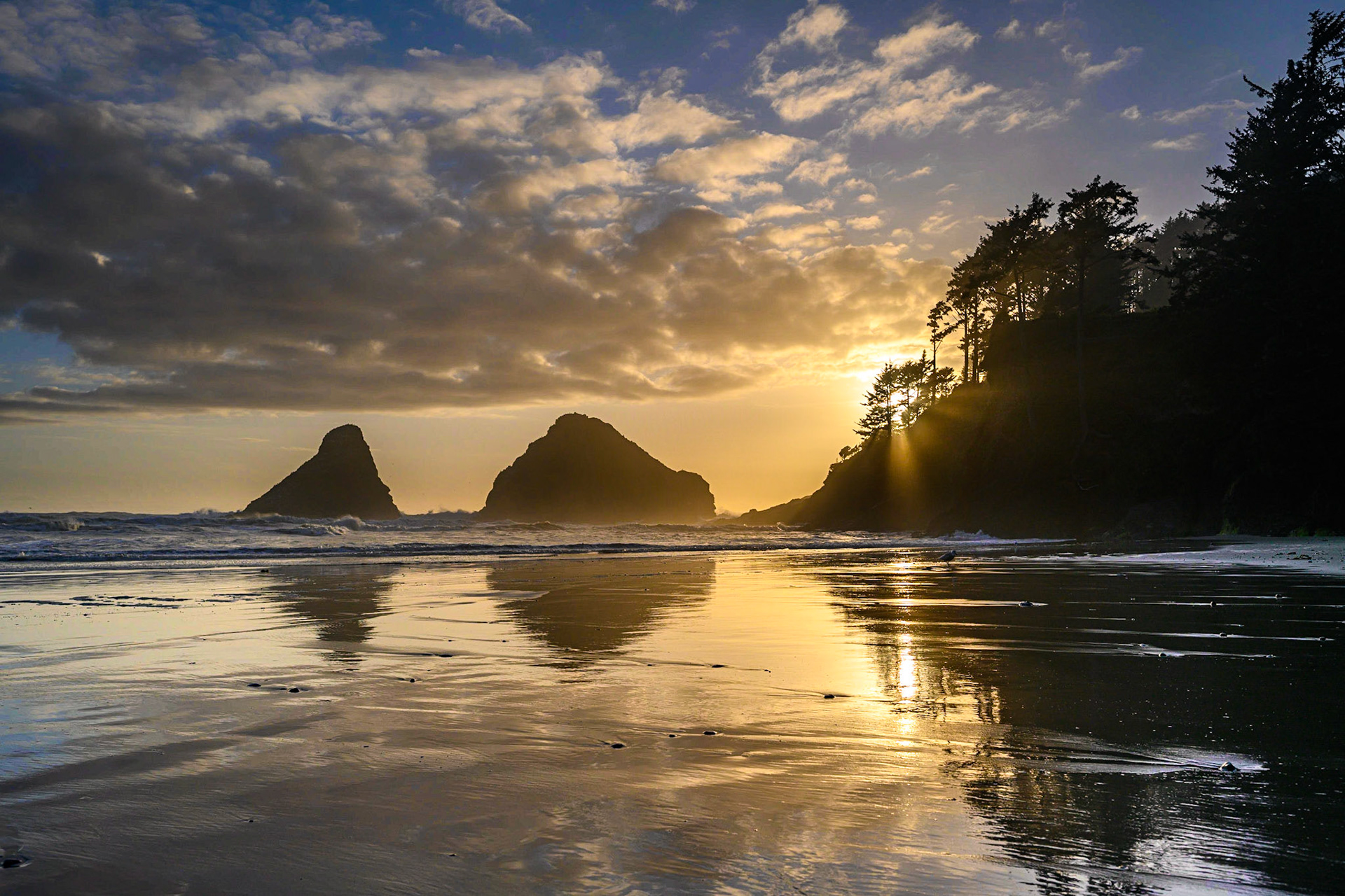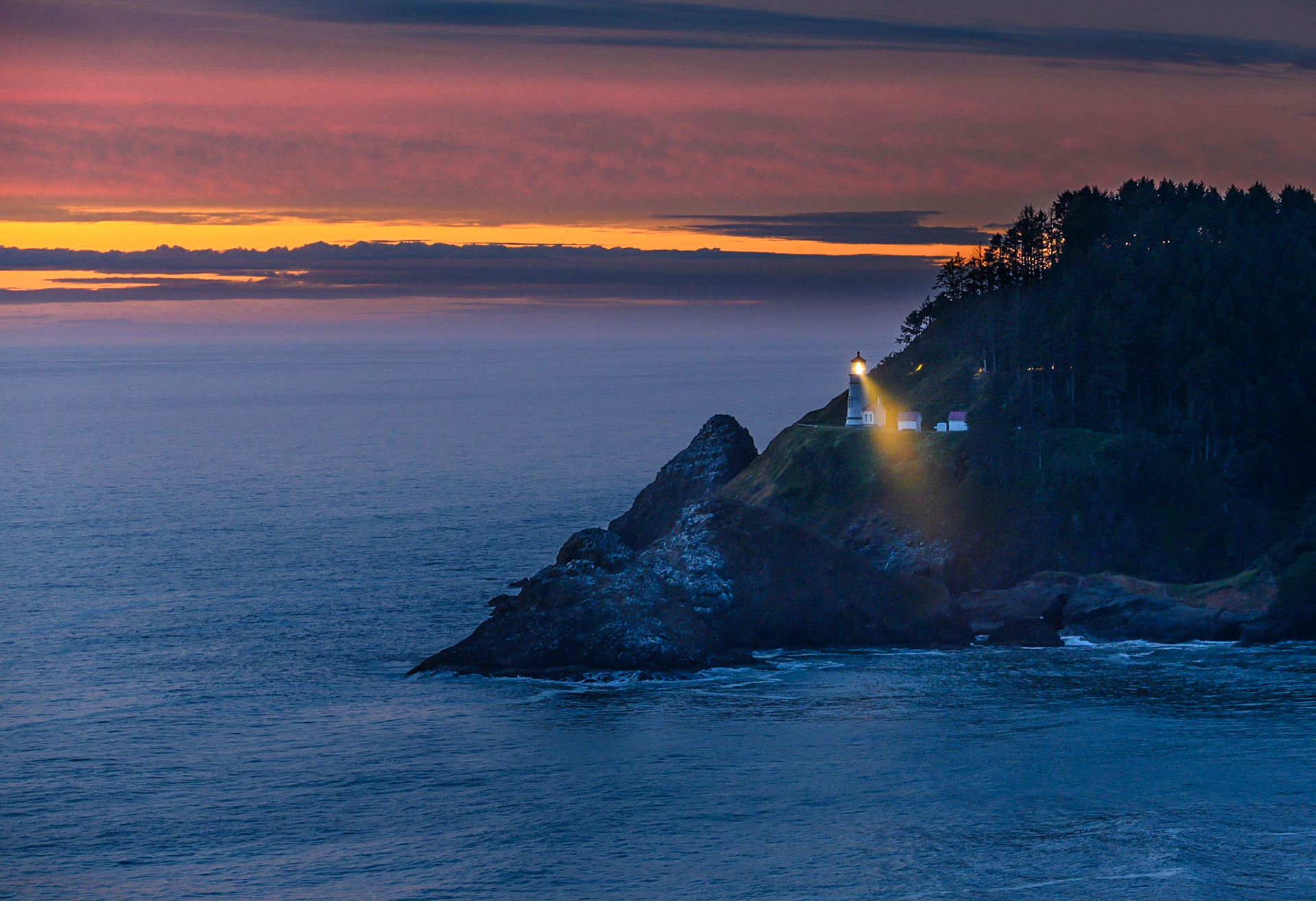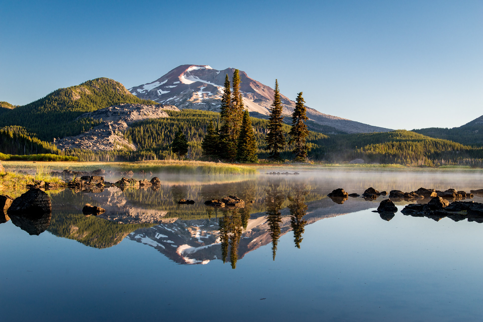 Wizard island peers through the trees in Crater Lake National Park, OR.